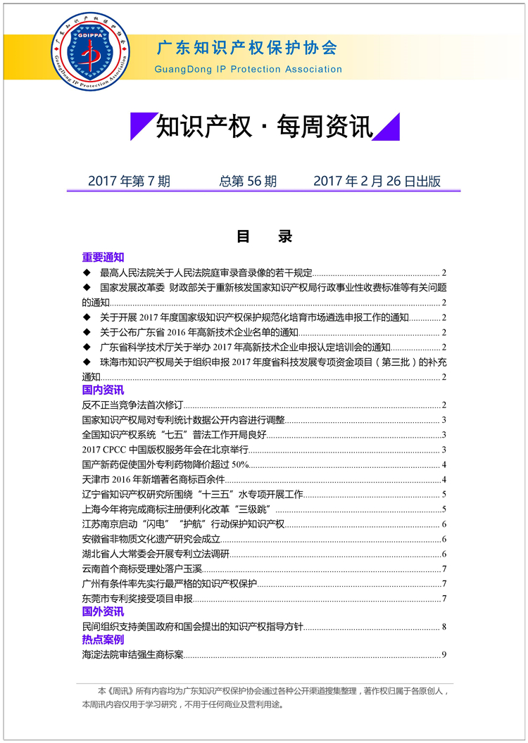 广东知识产权保护协会第56期:知识产权·每周资讯