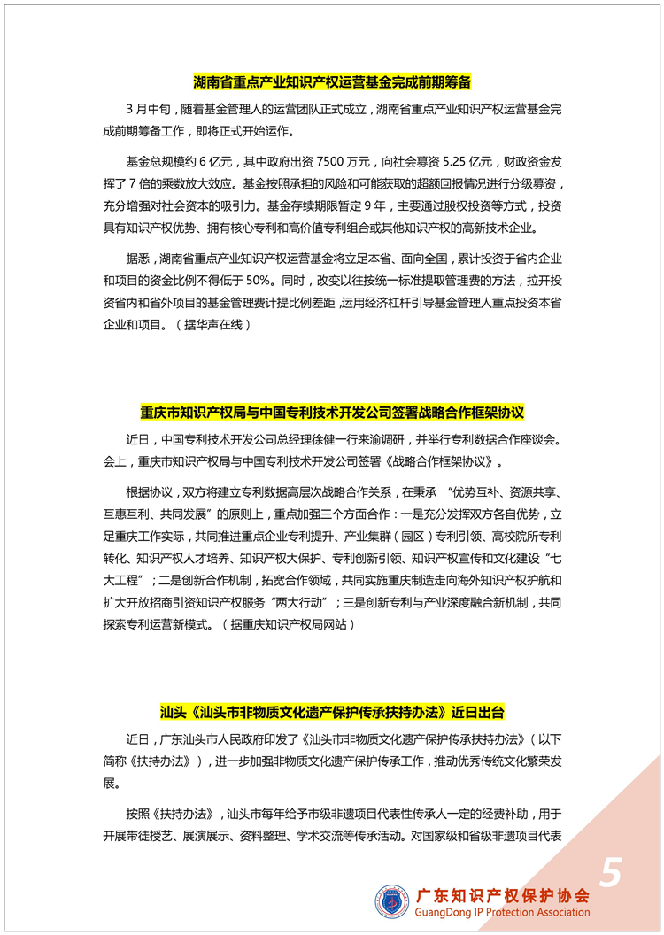 广东知识产权保护协会第59期:知识产权·每周资讯