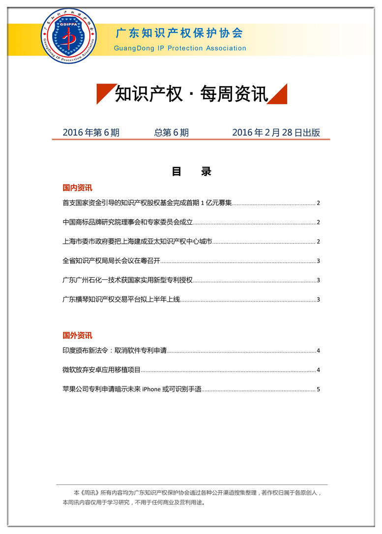广东知识产权保护协会第6期:知识产权·每周资讯