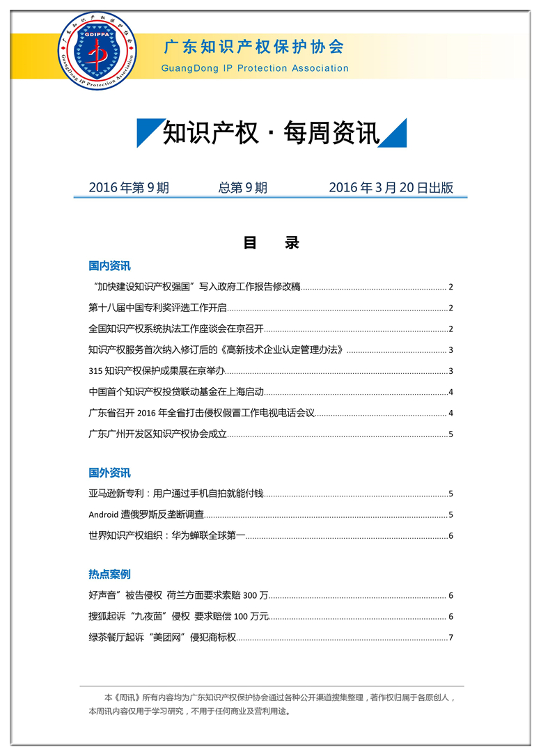 广东知识产权保护协会第9期:知识产权·每周资讯