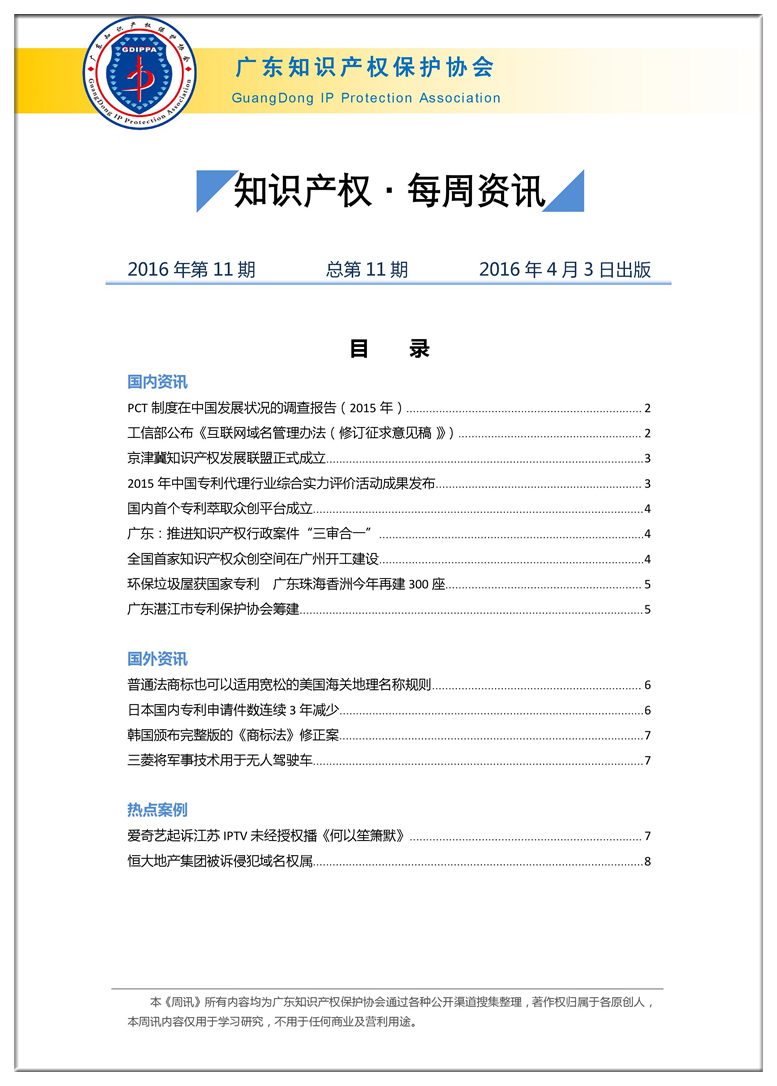 广东知识产权保护协会第11期:知识产权·每周资讯