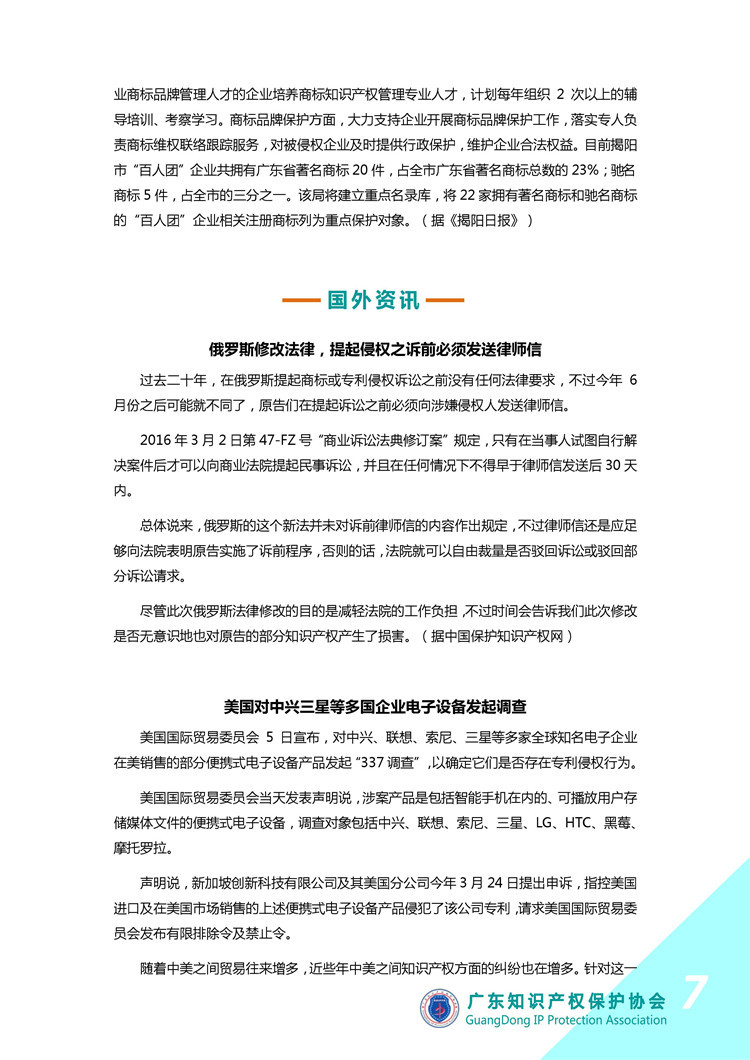 广东知识产权保护协会第16期:知识产权·每周资讯