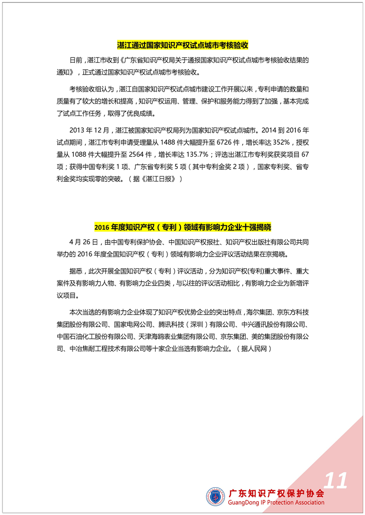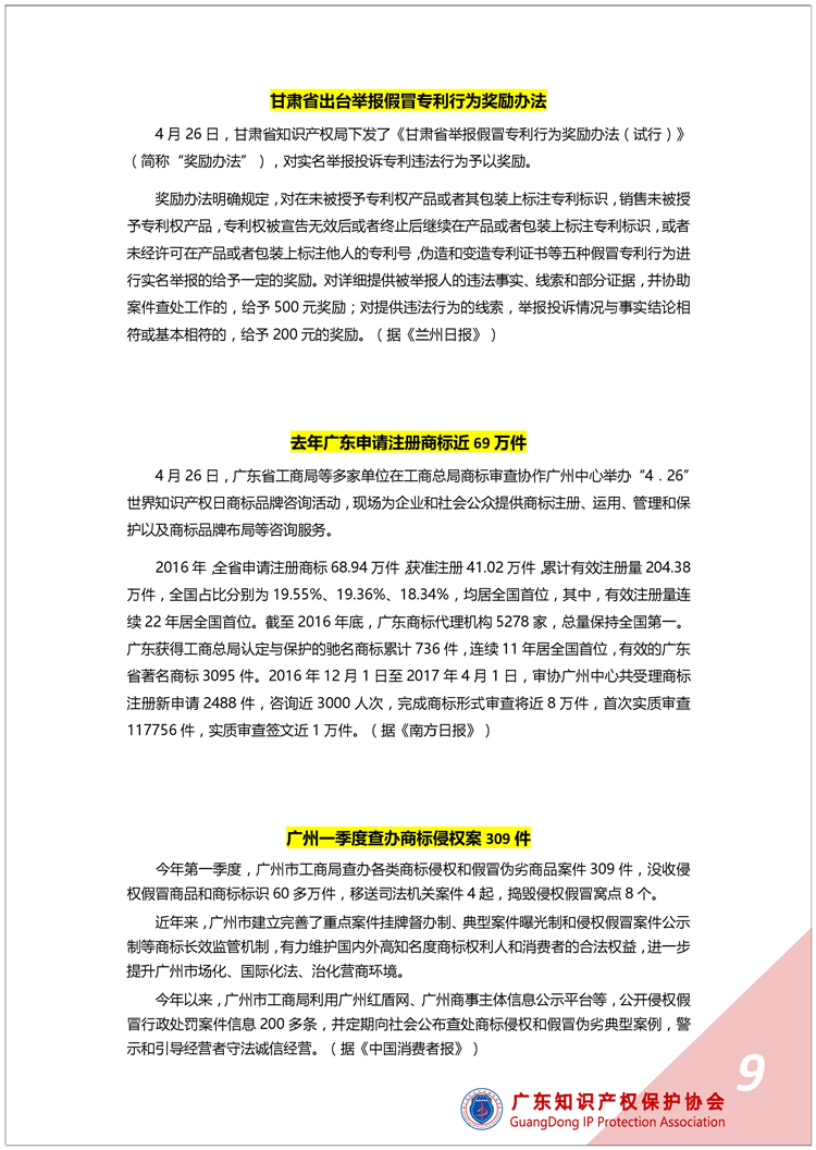 广东知识产权保护协会第65期:知识产权·每周资讯