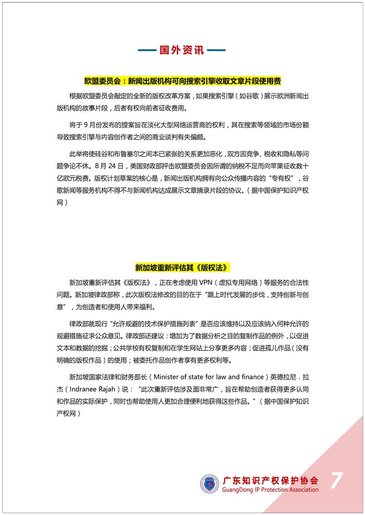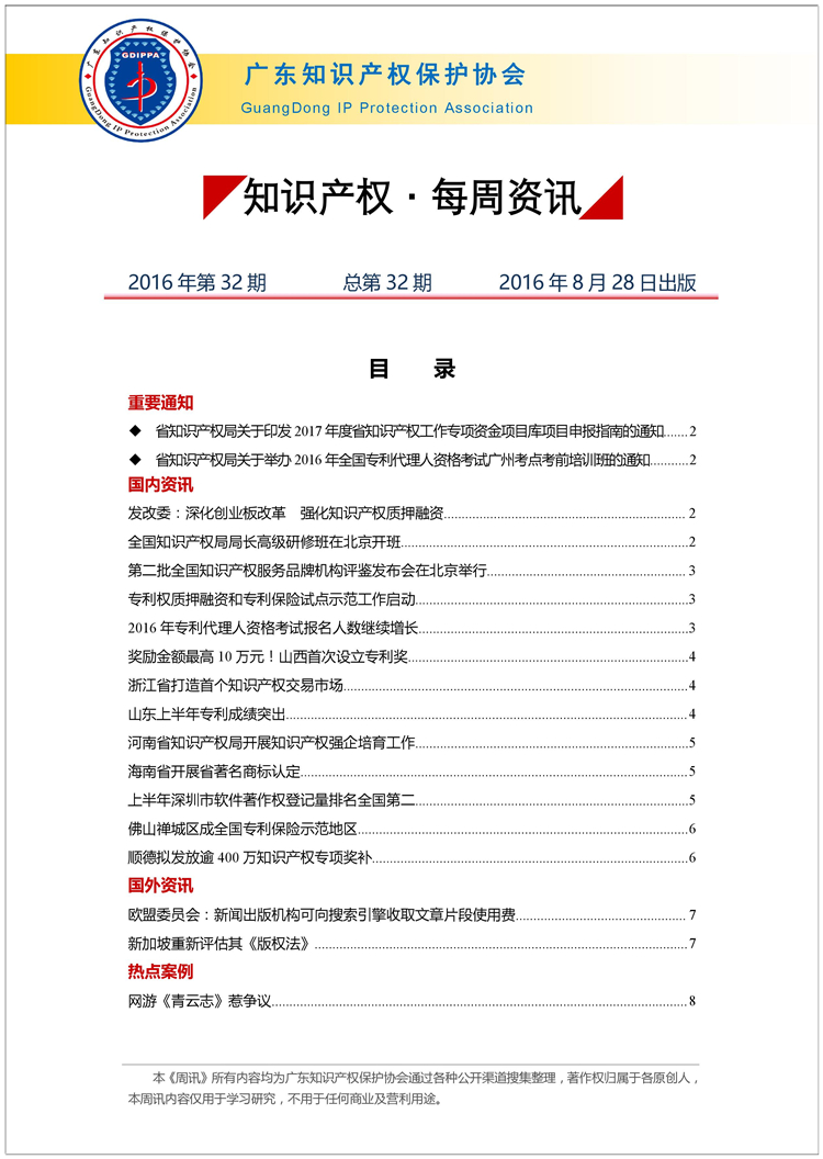 广东知识产权保护协会第32期:知识产权·每周资讯