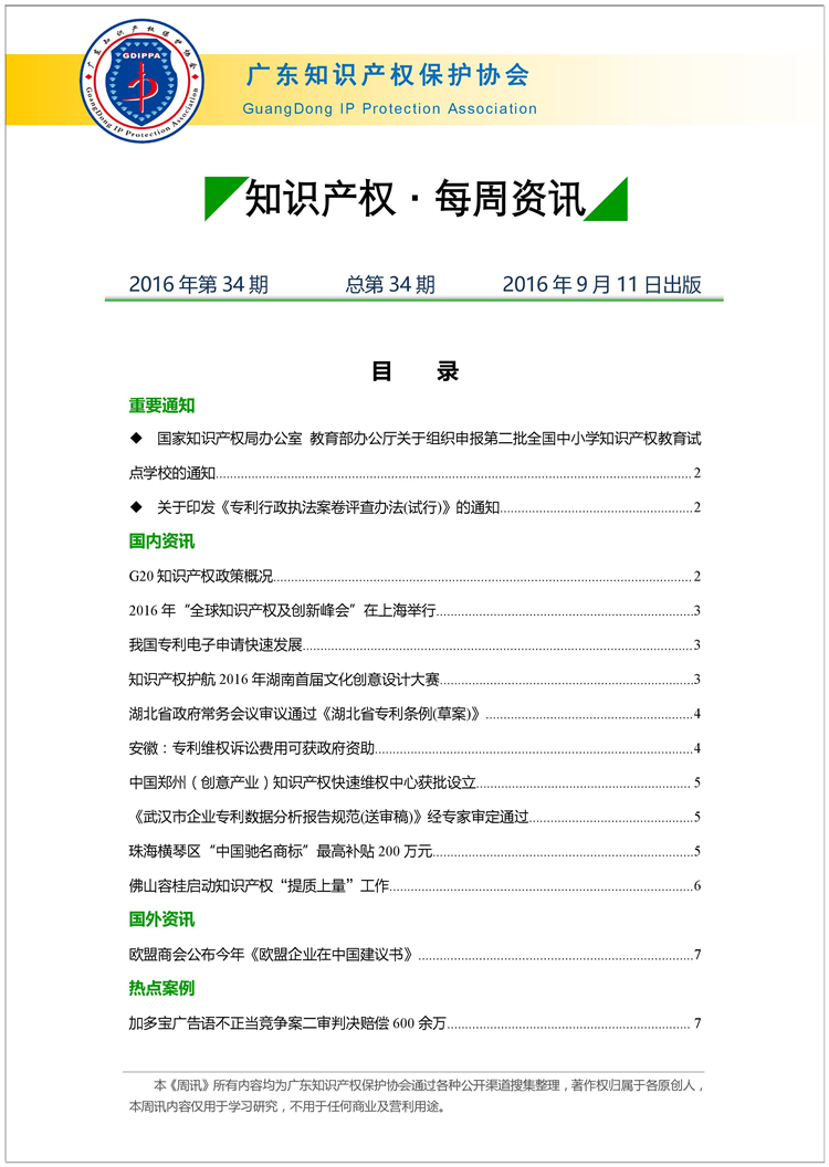 广东知识产权保护协会第34期:知识产权·每周资讯