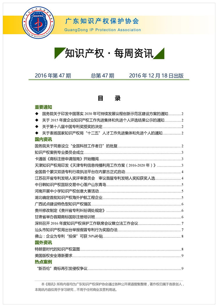 广东知识产权保护协会第47期:知识产权·每周资讯