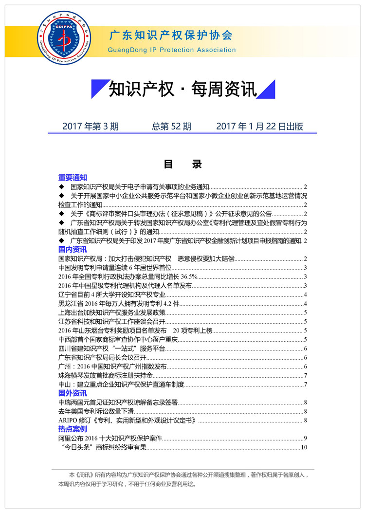 广东知识产权保护协会第52期:知识产权·每周资讯