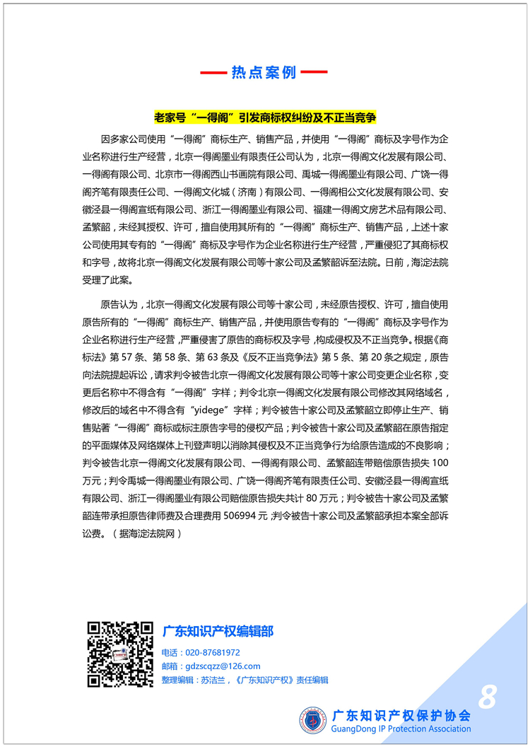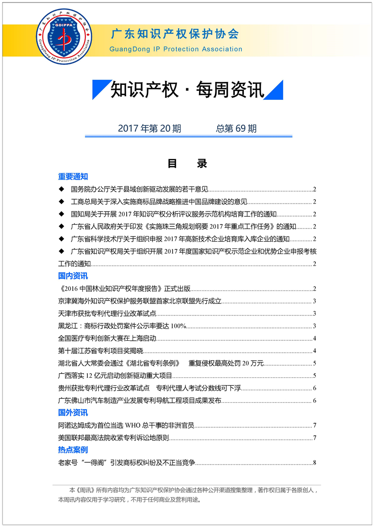 广东知识产权保护协会第69期:知识产权·每周资讯